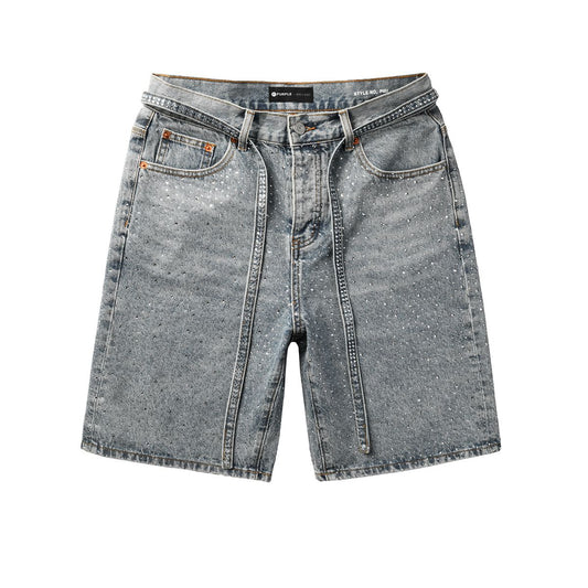 Purple Blue Rhinestone Jeans Shorts